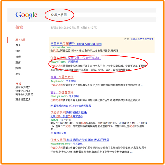 仪器交易网与Google、Baidu等搜索引擎强强联合,不仅为仪器仪表企业提供行业门户平台宣传 推广,同时也为仪器仪表企业争取搜索引擎增值服务,提供Google右侧广告包年服务、Google左侧优 化、Baidu左侧优化!垄断Google、Baidu搜索页面,冲击采购者眼球!